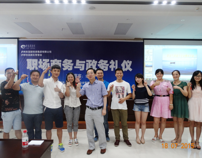 在禮儀培訓(xùn)中的游戲環(huán)節(jié)第8組成員獲獎(jiǎng)由公司馬董事長(zhǎng)頒發(fā)獎(jiǎng)品